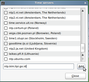 5. Pada kolom Time Servers Add NTP Server indonesia di bawah ini.