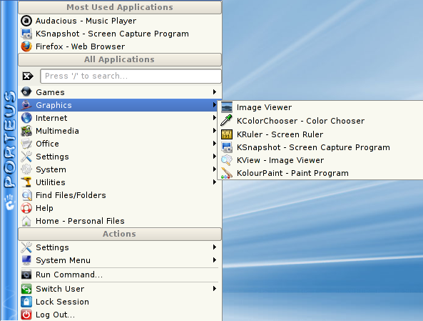 Porteus menyediakan 2 Desktop sekaligus di dalam distronya yaitu KDE 4.6.4 dan LXDE. wah bener-bener mengesankan, walau distro ini berkapasitas kecil namun cukup lenkap. kapasitas kecil dan ringan membuat distro poteus jalan lebih cepat ketimbang distro lainnya, tidak butuh waktu lama untuk masuk ke desktop porteus hanya hitungan detik kita sudah di suguhi distro yang menawan ini. porteus yang yang menggunakan Linux kernel 2.6.38.8 ini juga menyediakan fitur lengkap di dalamnya lebih lengkap dari yang saya duga, karna keraguan muncul saat melihat kapasitas disto yang tergolong kecil ini. untuk menjalankan audio dan video porteus sudah menyediakan fitur-fitur lengkap didalamnya.