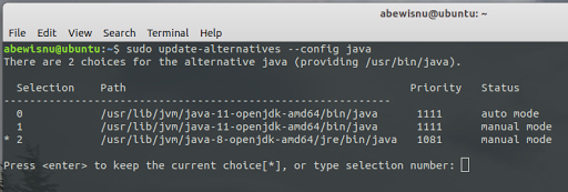 $ sudo update-alternatives --config java